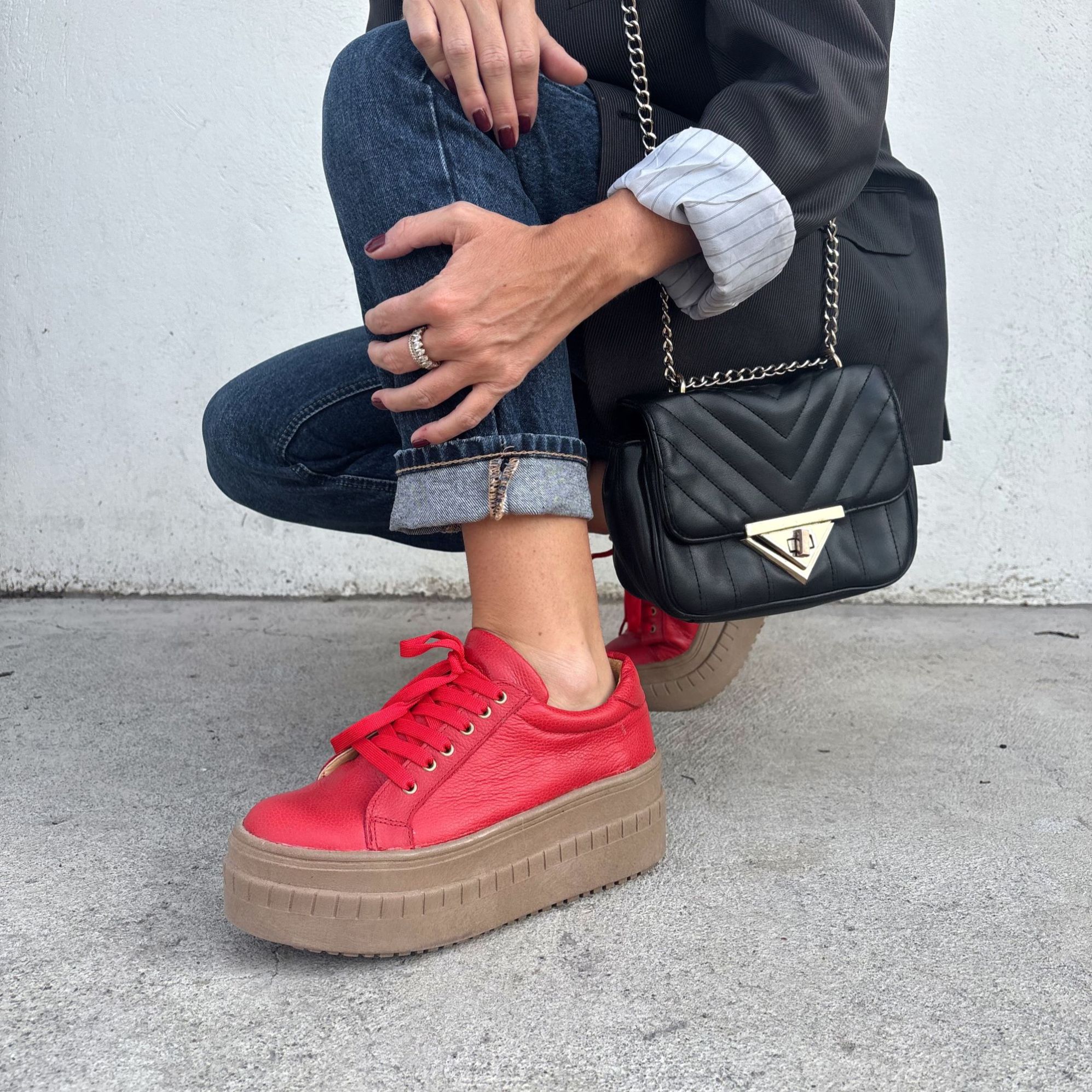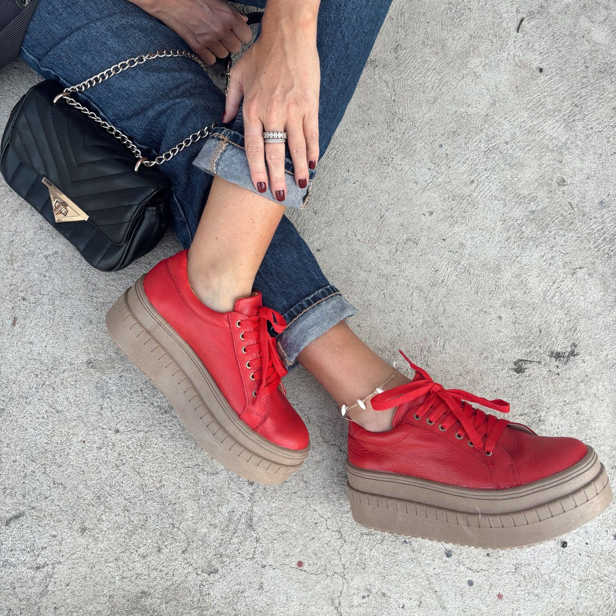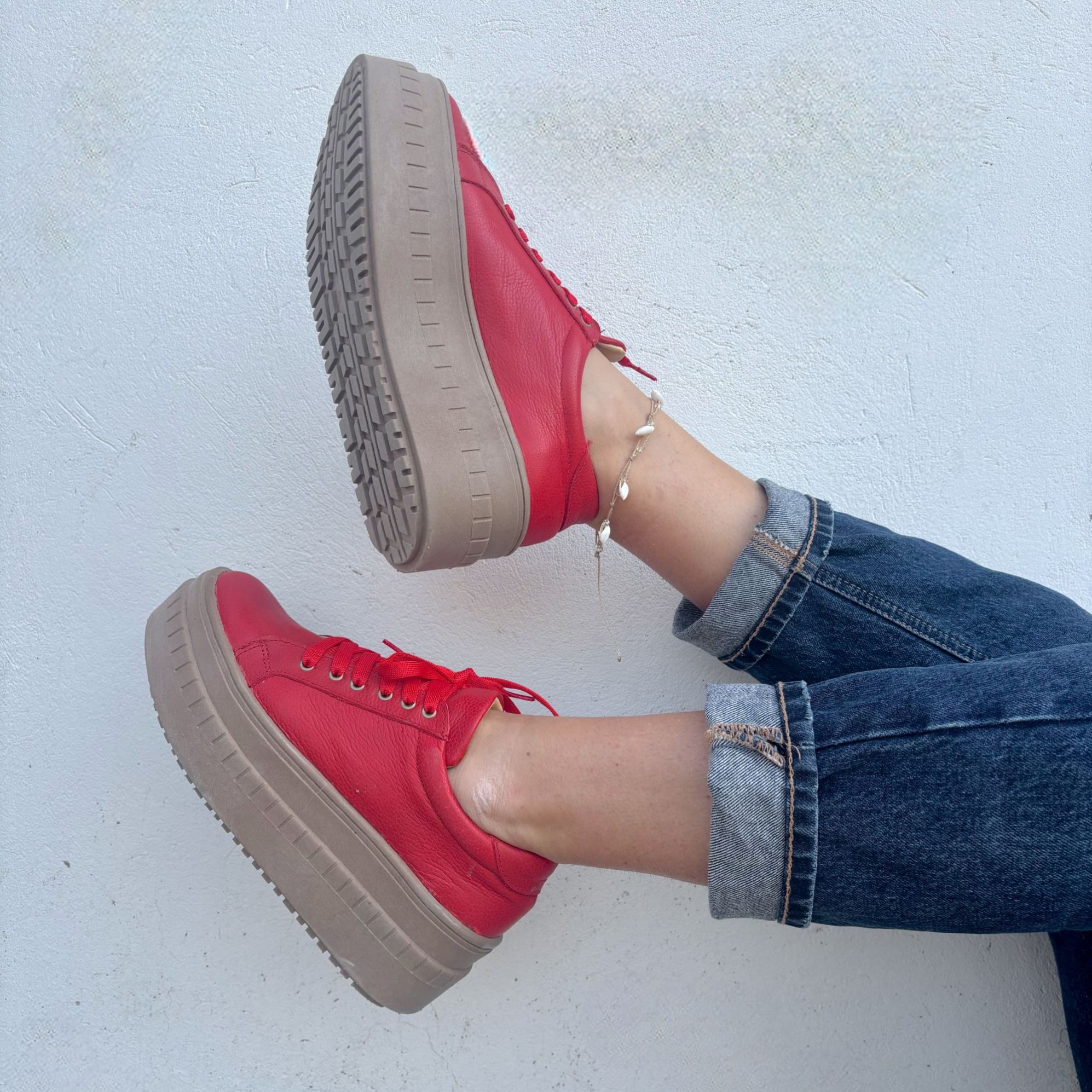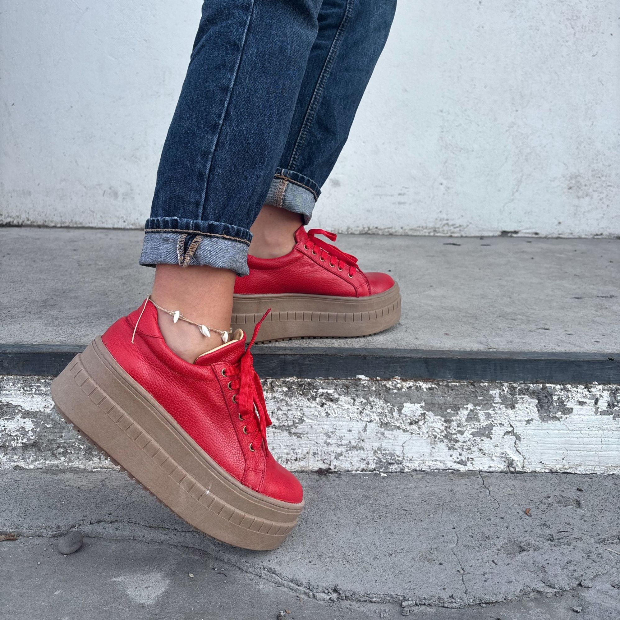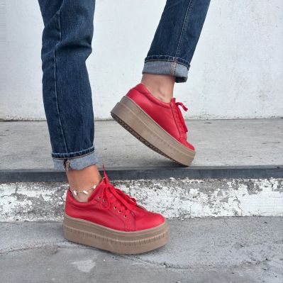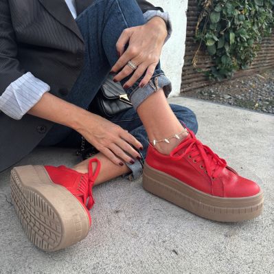 ZAPATILLA CUERO ROJO